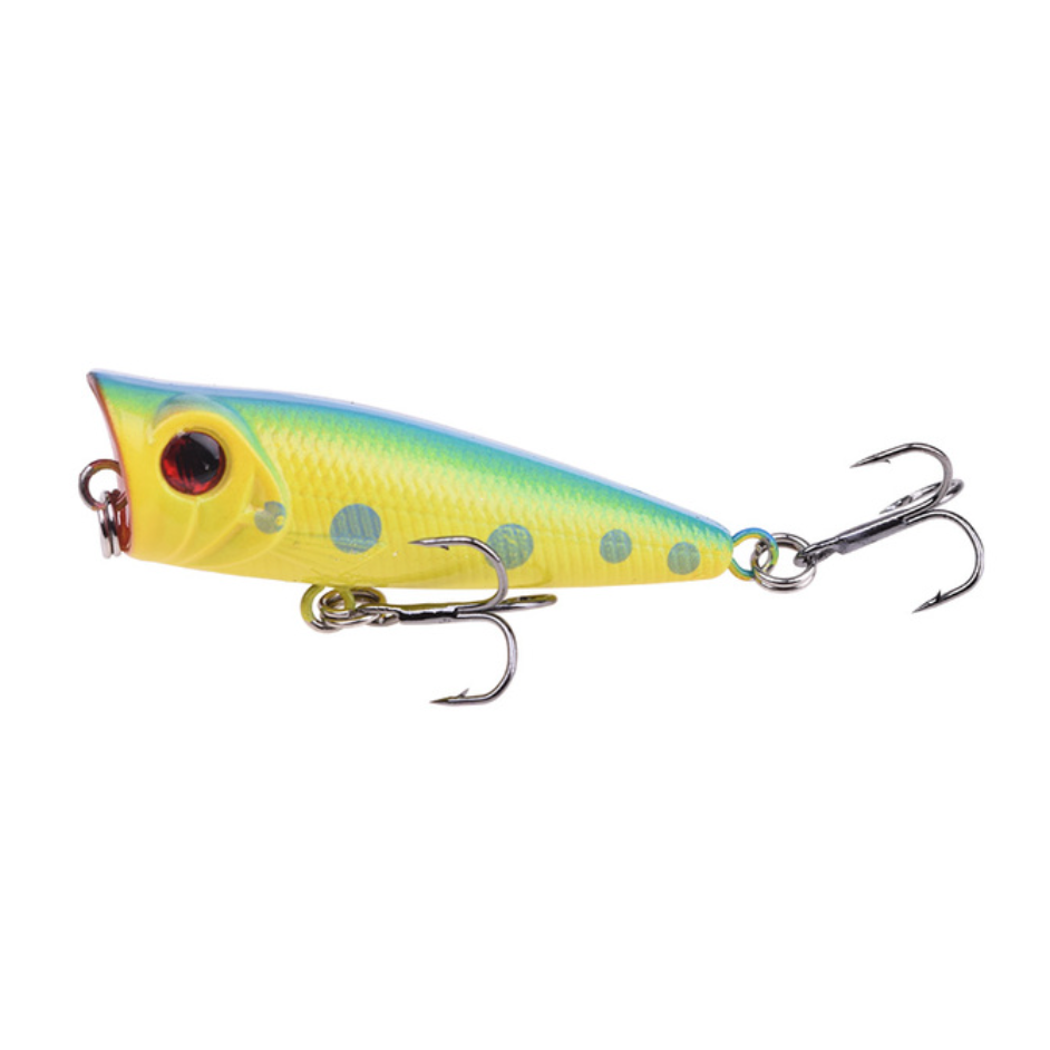 Notre leurre de surface popper est un choix idéal pour les pêcheurs passionnés de brochets, perches et bass. Ce leurre mesure 5 cm pour 4,5 grammes et est conçu pour flotter à la surface de l'eau, attirant les poissons en surface pour les mordre.
