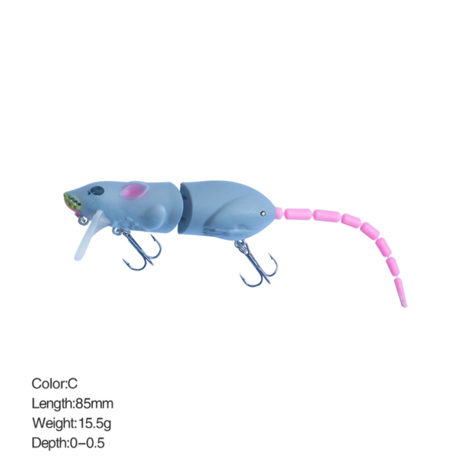 Notre Leurre Rat se distingue par sa conception exceptionnelle, reproduisant fidèlement un rat nageant à la surface de l'eau. La ressemblance est stupéfiante, tant dans la forme que dans les mouvements. Il est disponible en deux couleurs réalistes : brun foncé et gris, pour s'adapter aux conditions de pêche variées. La finition détaillée et les couleurs authentiques font de ce leurre un appât irrésistible pour les prédateurs.