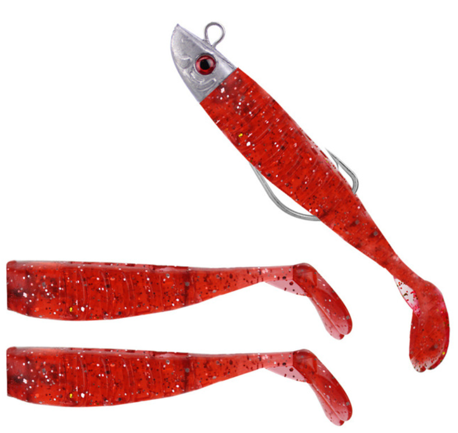 Leurre souple pêche aux leurres + 2 leurres de remplacement rouge