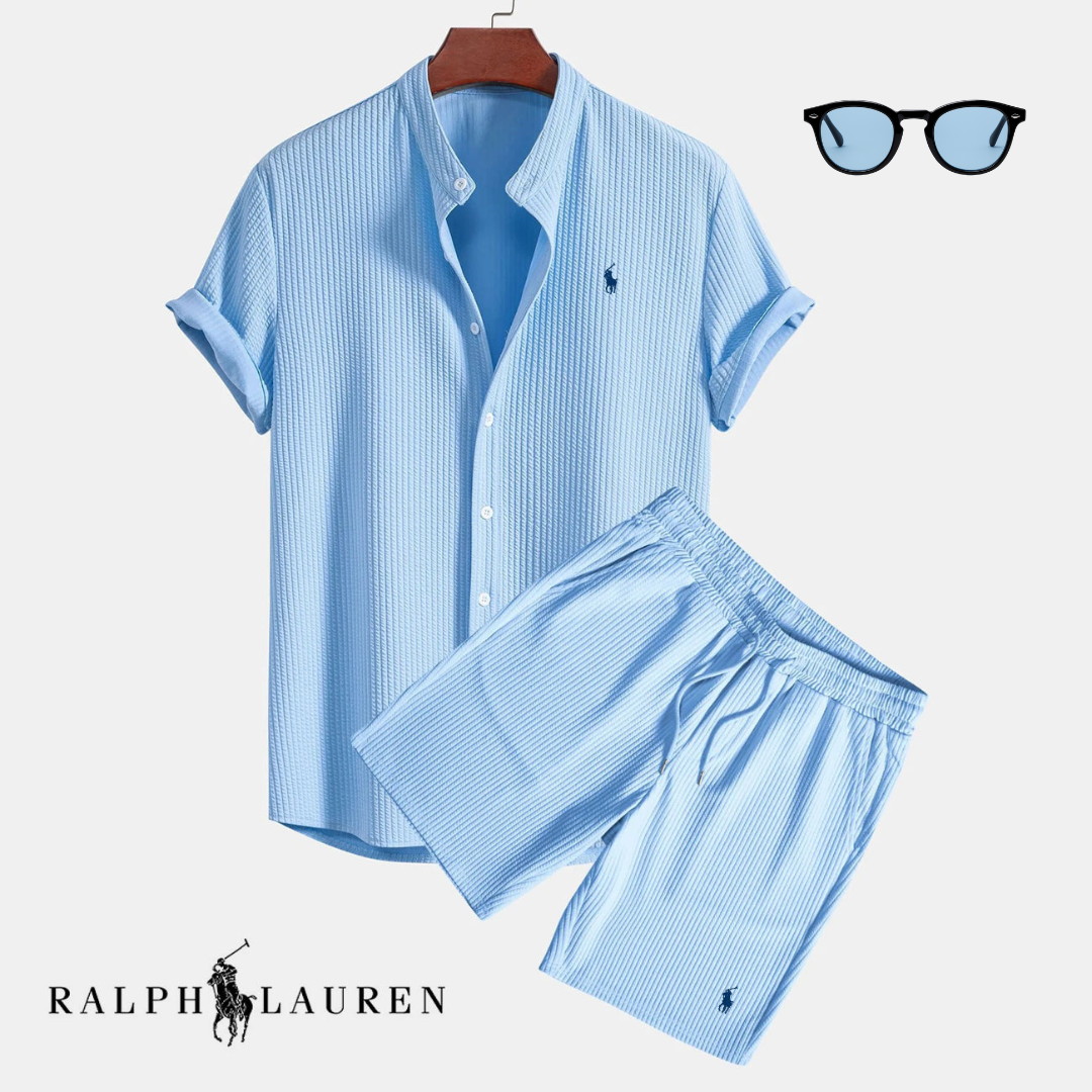 Bestaande uit een lichtgewicht overhemd met korte mouwen en een bijpassende short. Verkrijgbaar in vier stijlvolle en verfijnde kleuren (zwart, wit, lichtblauw en groen), belichaamt deze set de minimalistische Amerikaanse chic, ondertekend door Polo RL 🐎.