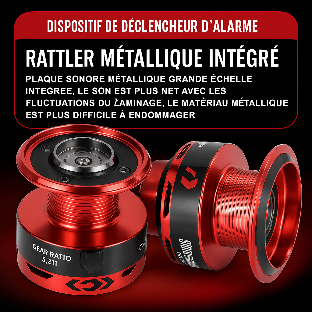 Grâce à son déclencheur d’alarme intégré et à sa plaque métallique de haute qualité, ce moulinet offre un son net, une grande résistance et une performance fiable même dans les conditions les plus extrêmes. Le choix parfait pour les pêcheurs exigeants !