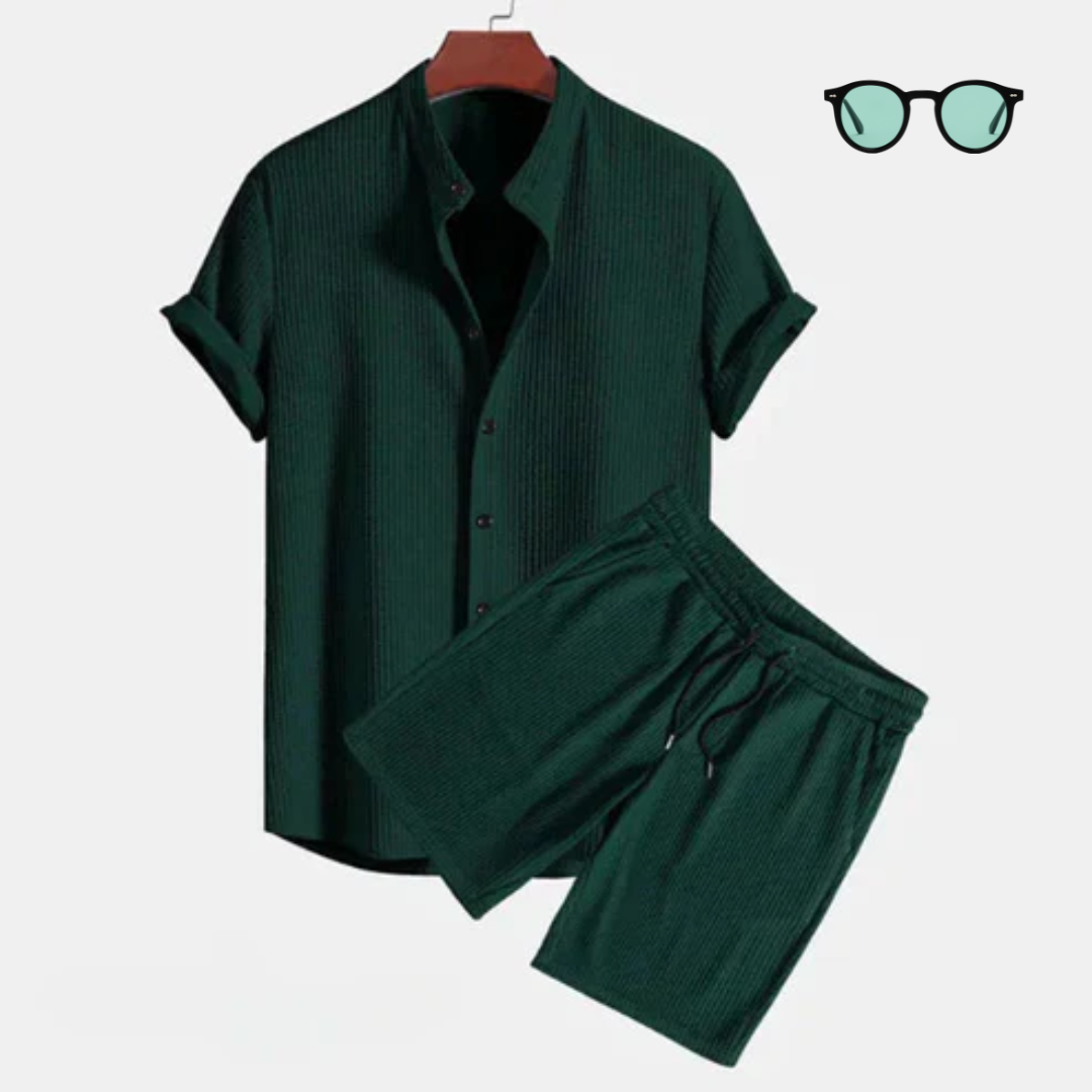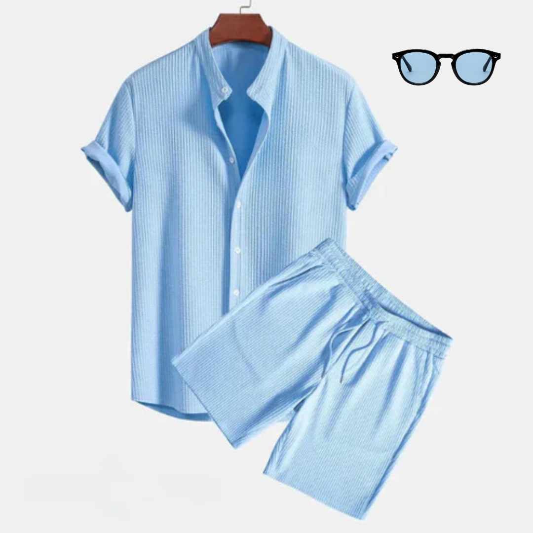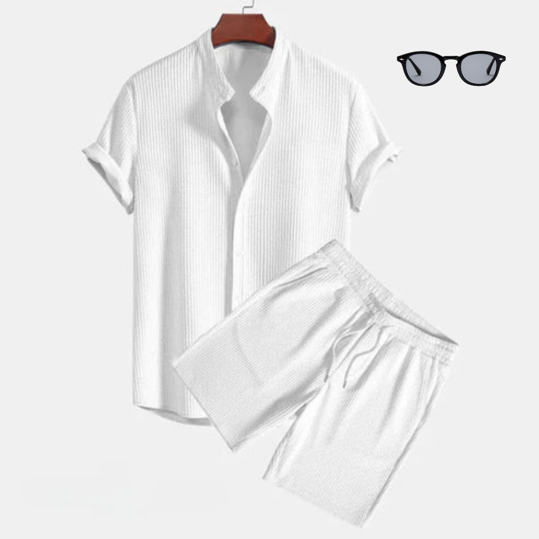 Met een vlekkeloos wit overhemd en verfijnde shorts